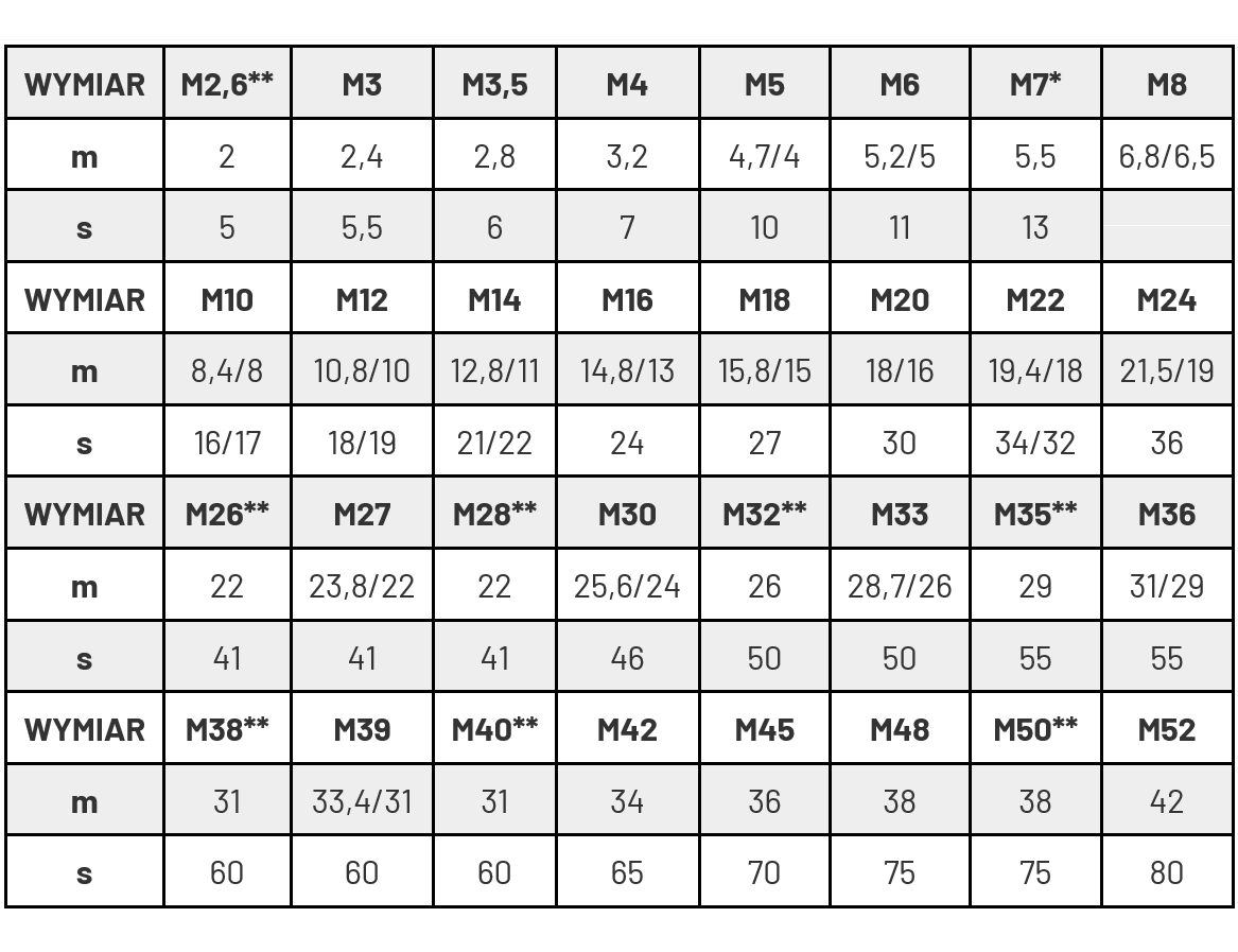 Materiał: 5 / 5-2 / 6 / 8 / 10 / 12 / A2 / A4 / A5 / 1.4571 / C35 / 24CrMo5 / 25CrMo4 / CuNiSi / MOSIĄDZ