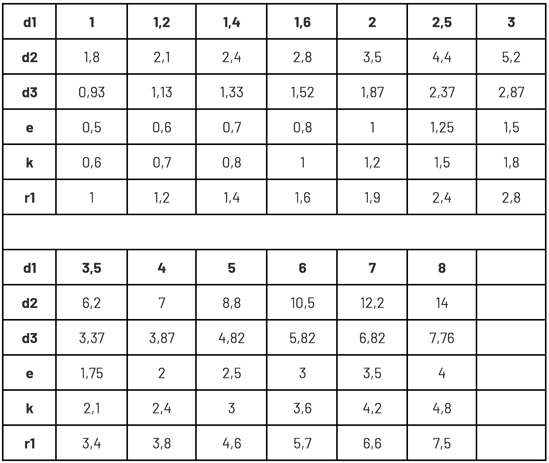 Materiał i klasa: Stal / A2 / A4 / Mosiądz / Miedź / Aluminium