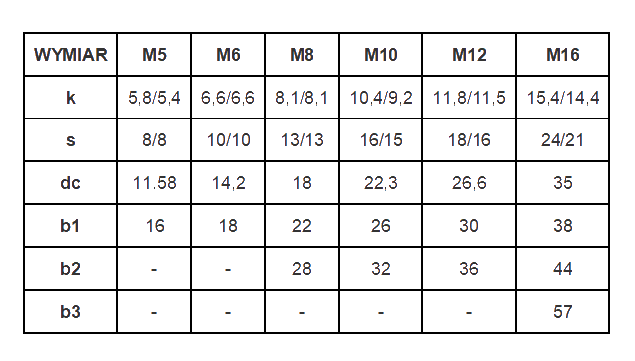 Materiał i klasa: 8.8 / 10.9 / A2 / A4