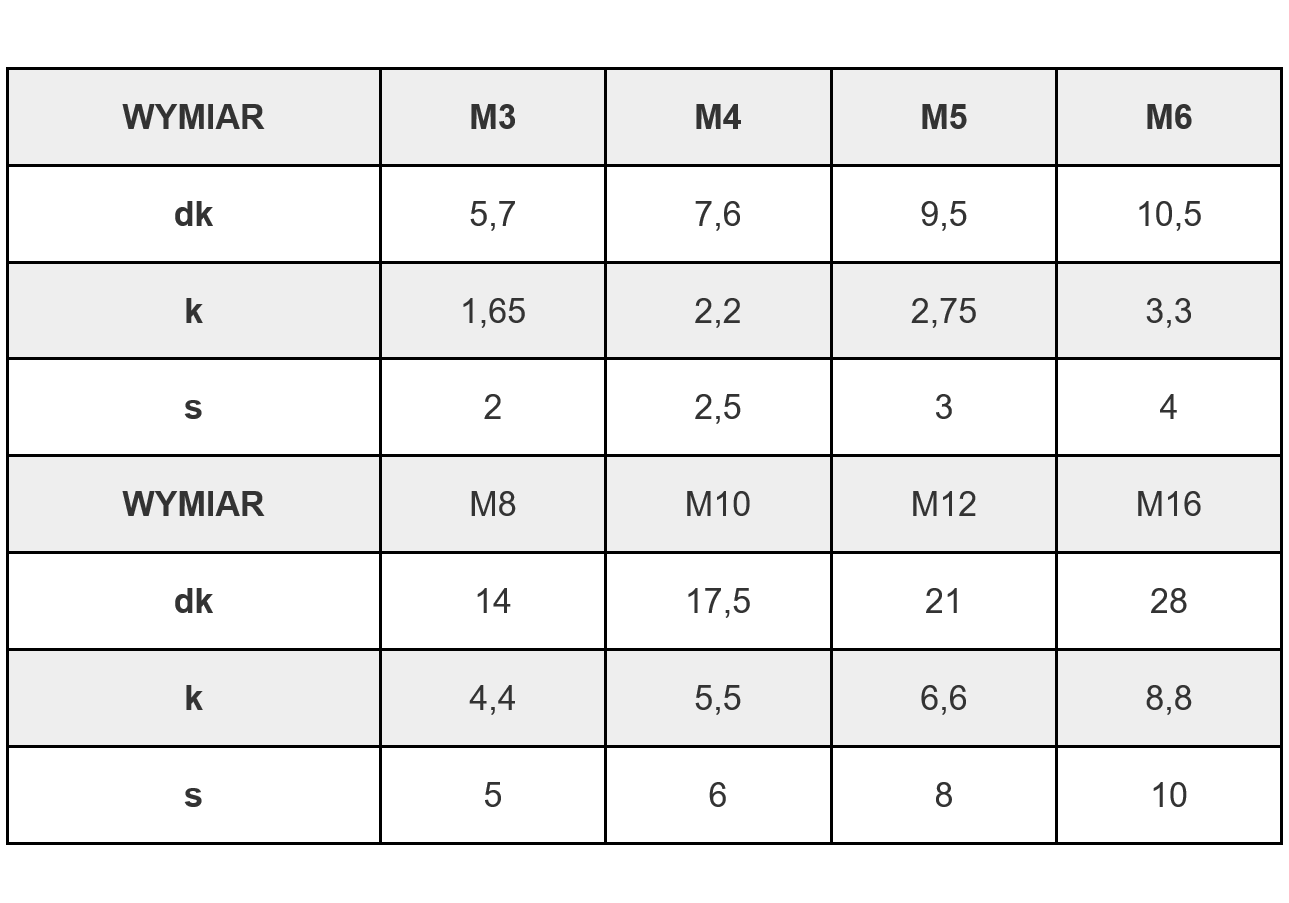 Materiał: 8.8 / 10.9 / 12.9 / A2 / A4