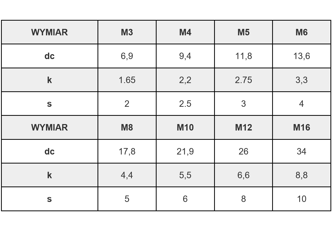 Materiał: 8.8 / 10.9 / 12.9 / A2